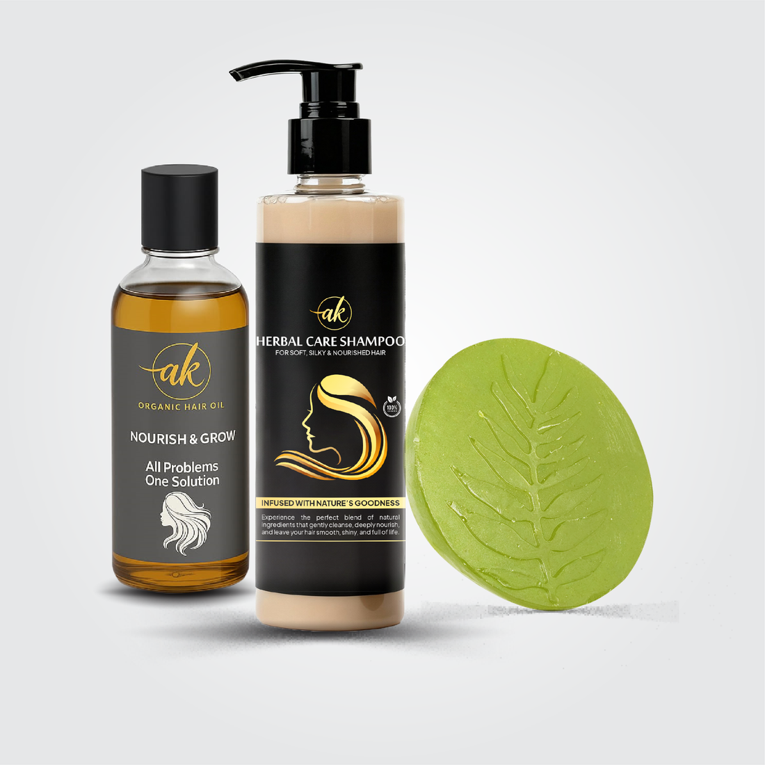 AK Organic Hair Oil + Shampoo + Neem/Acne Soap